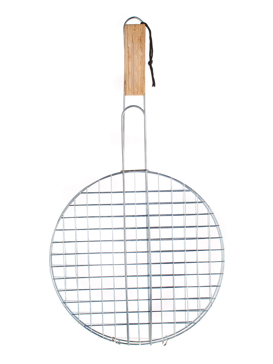 mřížka opékací kulatá pr.30cm BBQ, dřev. rukojeť